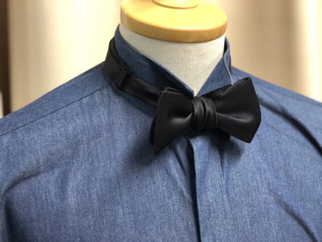 手結び蝶タイならではの立体感や雰囲気を残しつつ、アジャスター仕様にすることで、結びの手間なく気軽にご着用いただけるアイテムです。