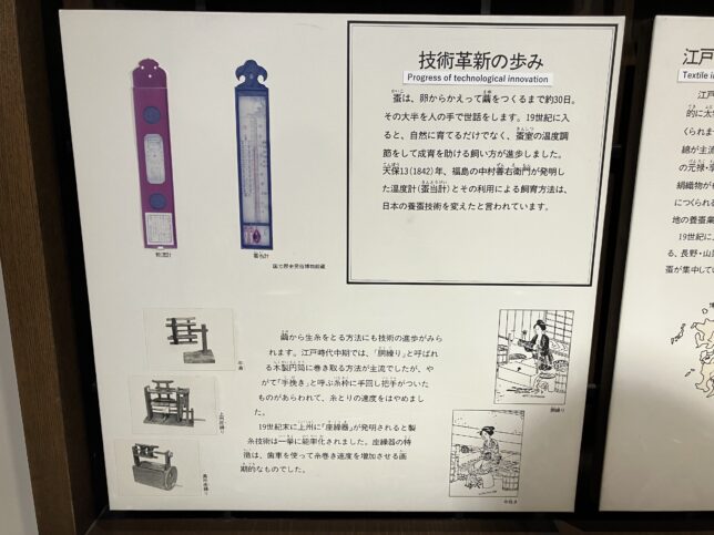 色々な織り機が展示されています。もとは生糸商人・八木下要右衛門(やぎした ようえもん)の屋敷跡に建てられた建物で、流れる時間もゆっくりと感じ、じっくりと見ることが出来ます。